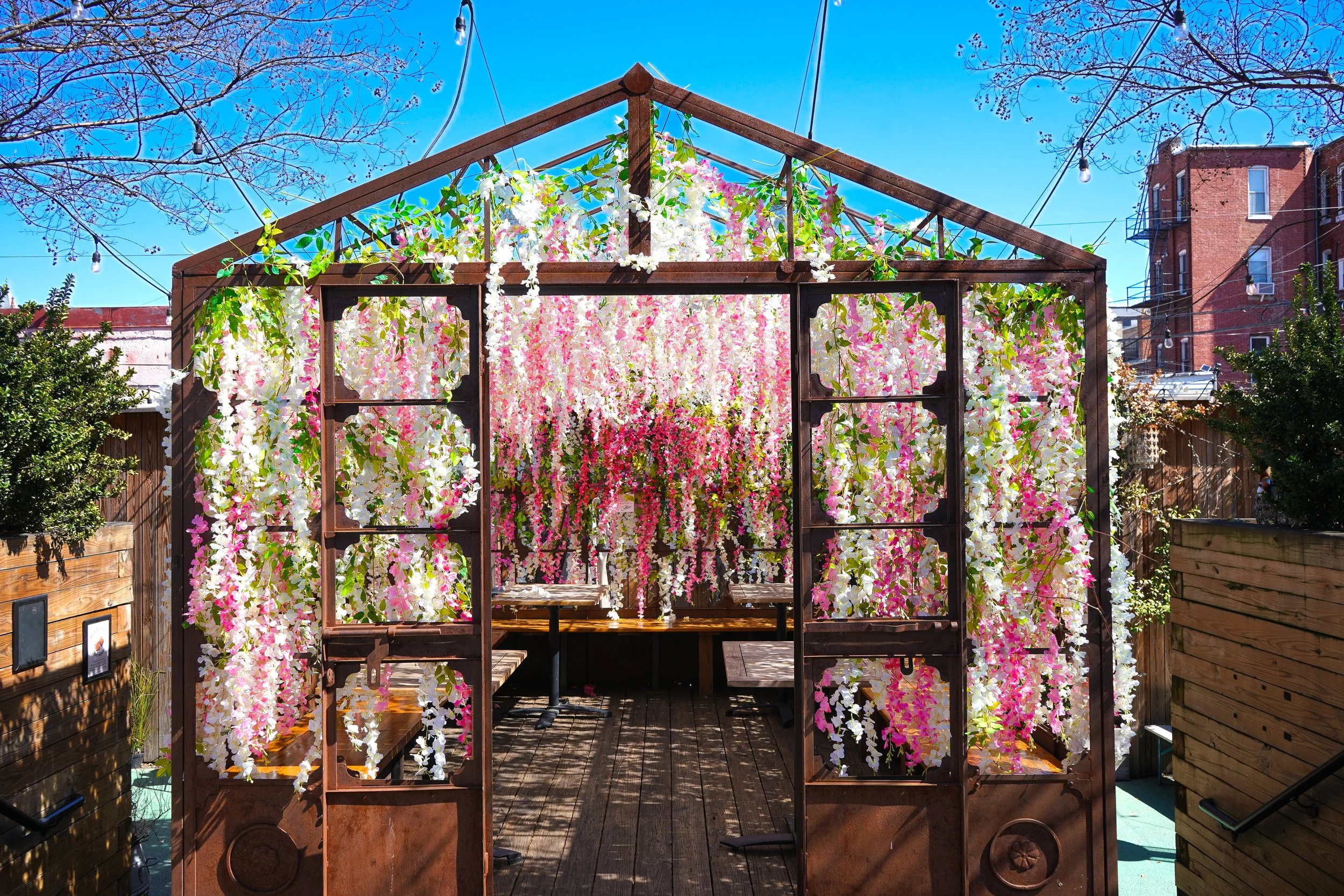We’re celebrating DC's cherry blossom season with Birdcage in Bloom, featuring our blossom-draped greenhouse, adorned with flowers, greenery, and twinkling lights with first-come first-served seating.